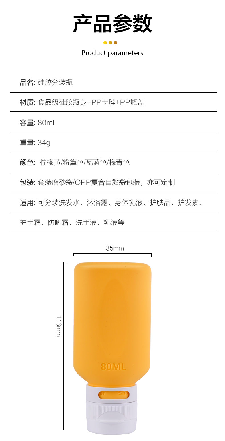 您的位置:首頁(yè) > 產(chǎn)品中心 > 硅膠家居用品 > 硅膠乳液分裝瓶旅行便攜包裝80ml擠壓式乳液化妝品收納瓶