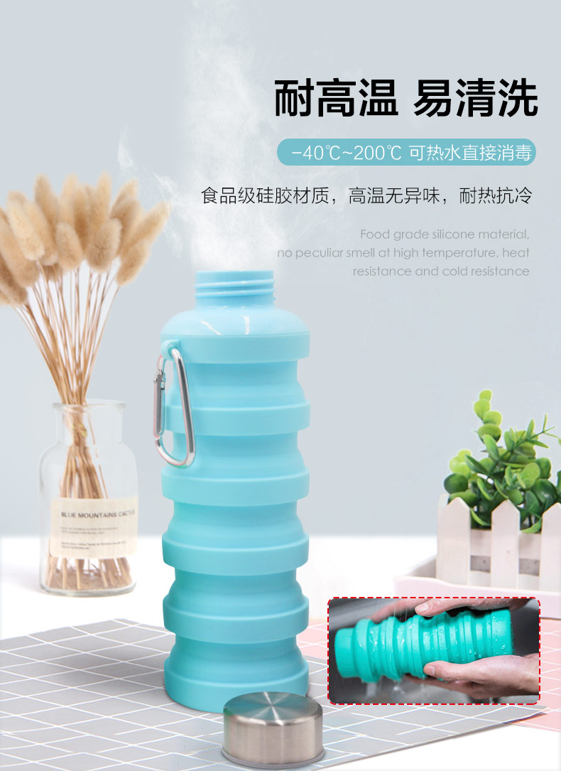 用途:食品級(jí)材質(zhì),不含BPA,可伸縮折疊,不占空間,抗摔 耐壓, 耐熱抗冷,多色可選,時(shí)尚健康
